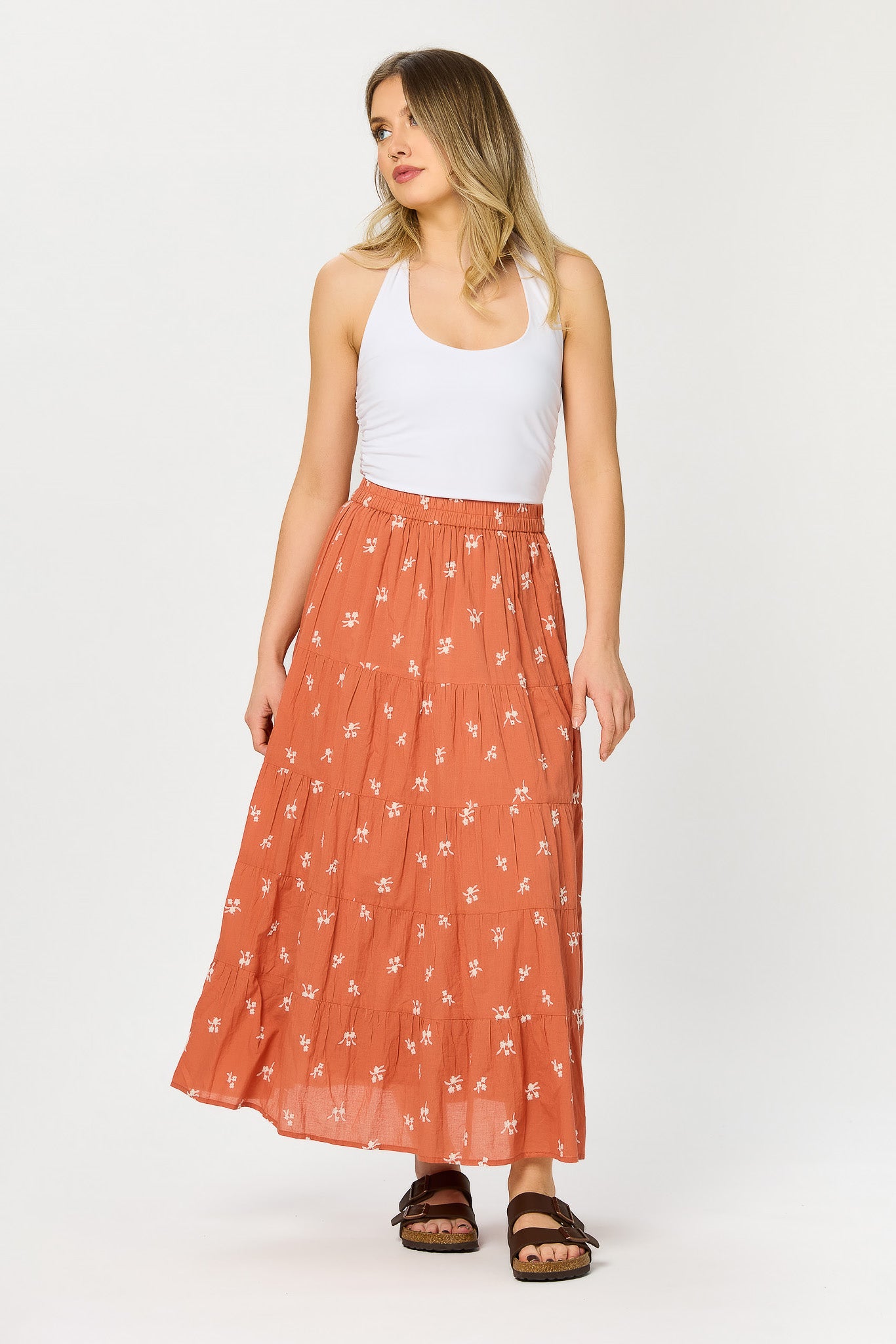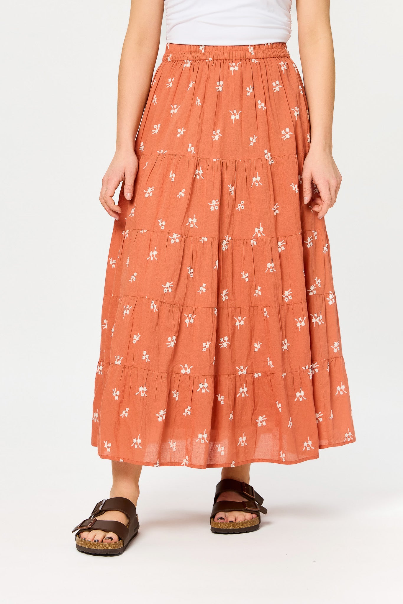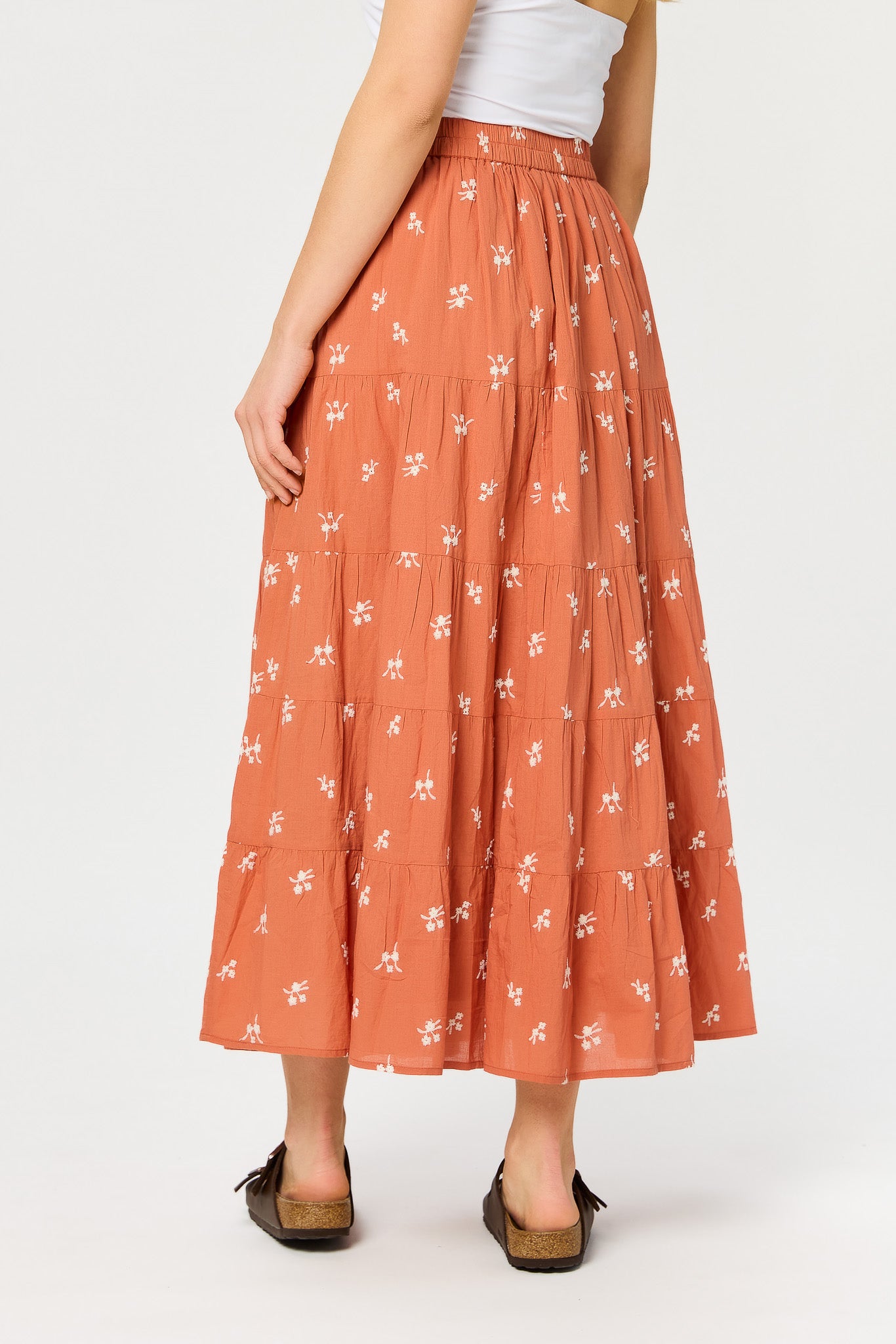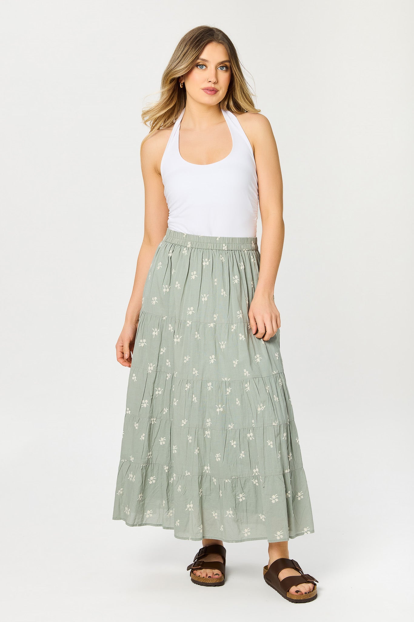 Olive Combo Patchwork Rayon Gauze Tiered Maxi Skirt