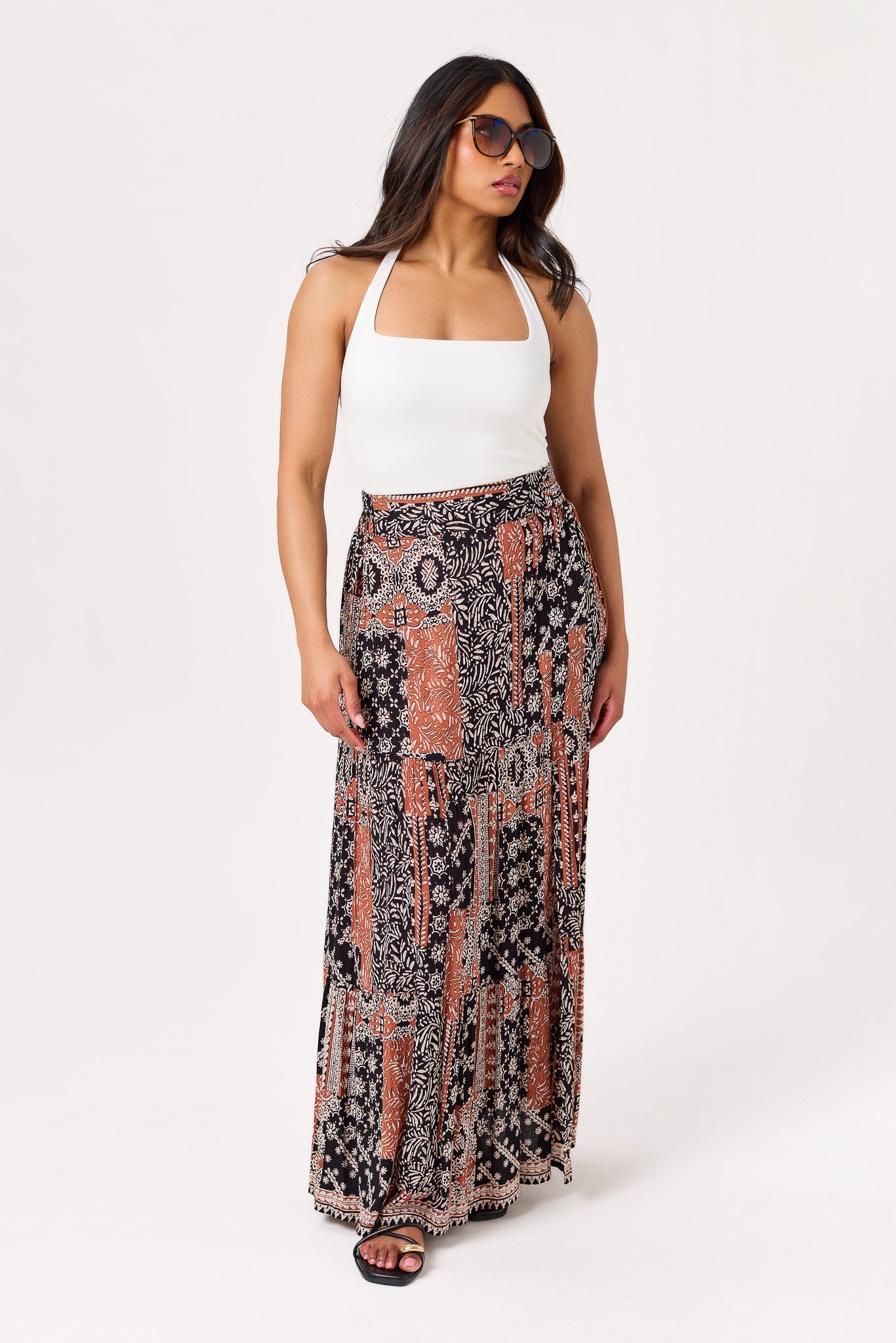 Patchwork Rayon Gauze Tiered Maxi Skirt