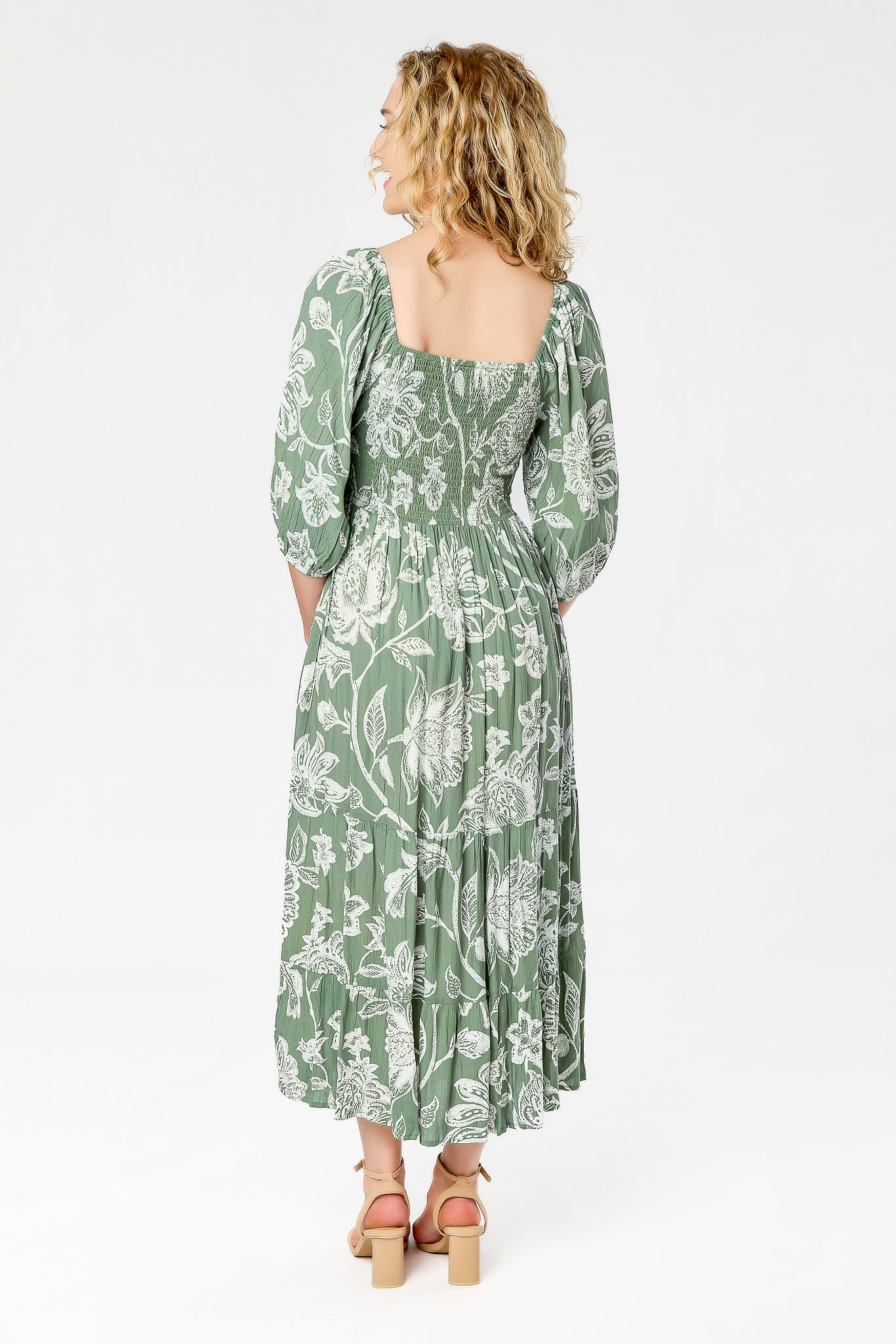 Floral Eyelet Midi Dress with Tie-Back