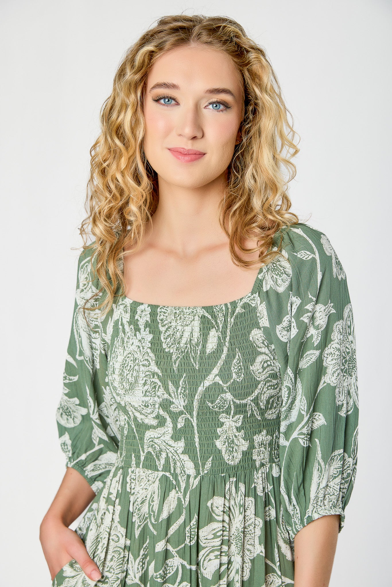 Small Floral Rayon Gauze Smocked Babydoll Cami
