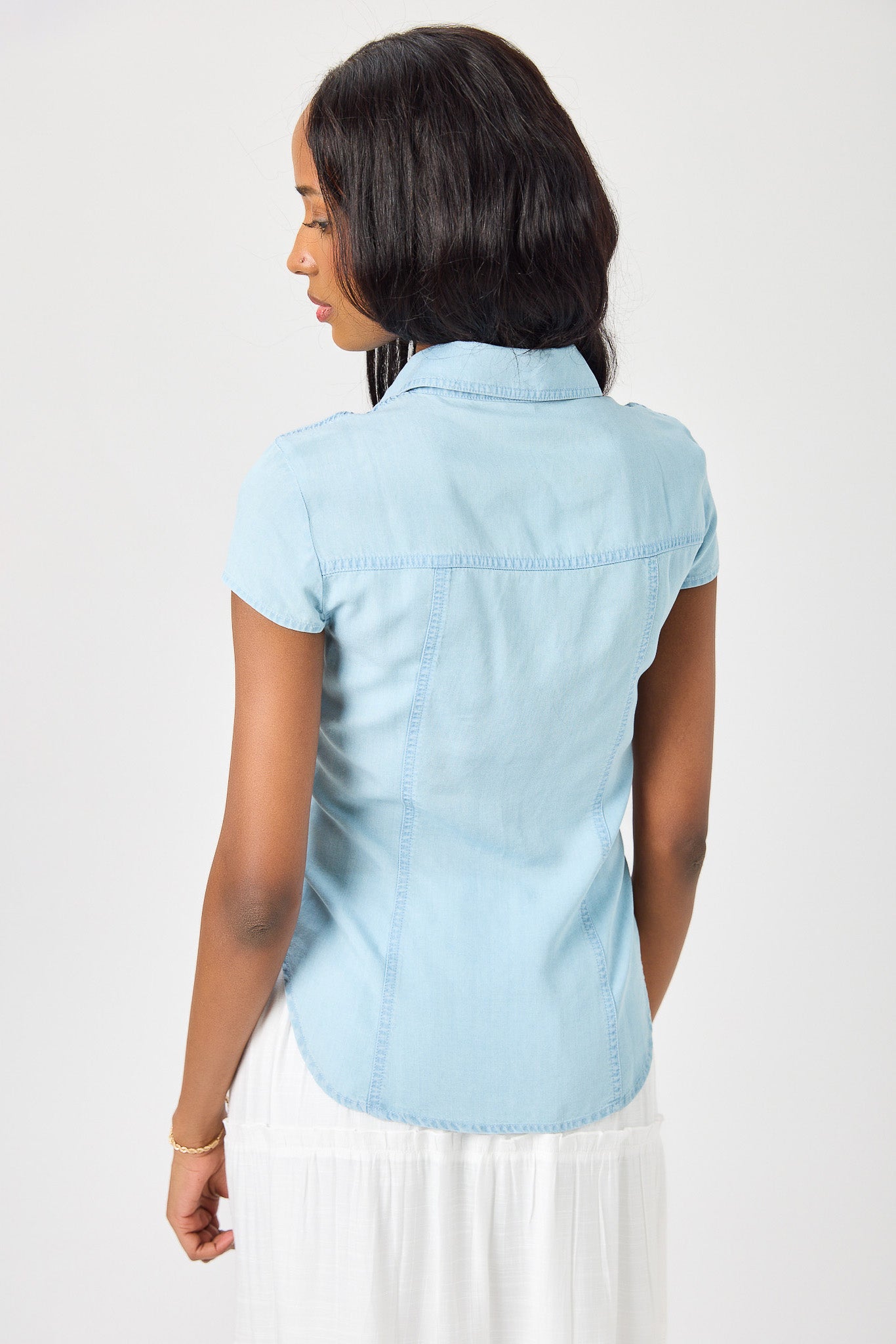Light Blue Lyocell Cap-Sleeve Fitted Shirt