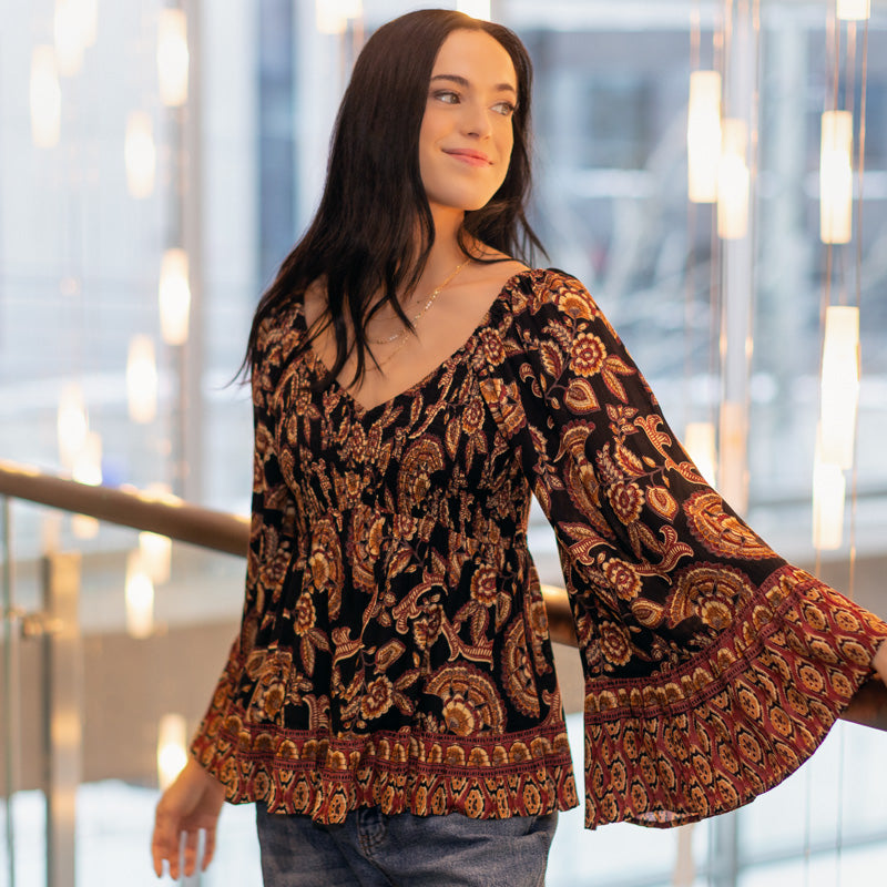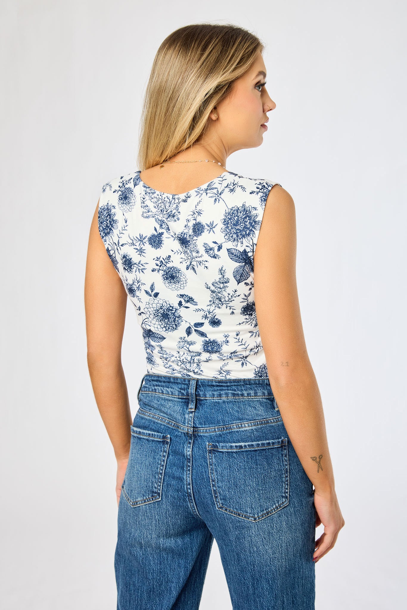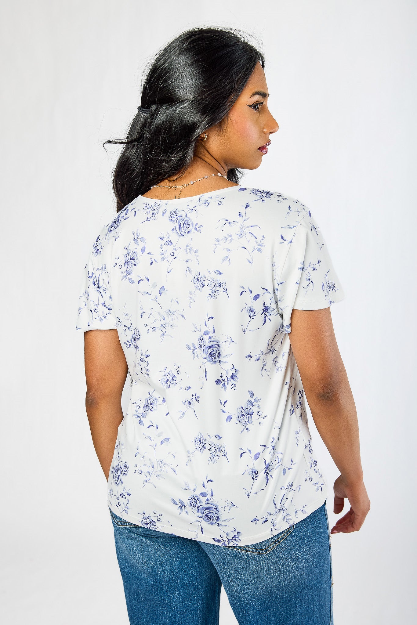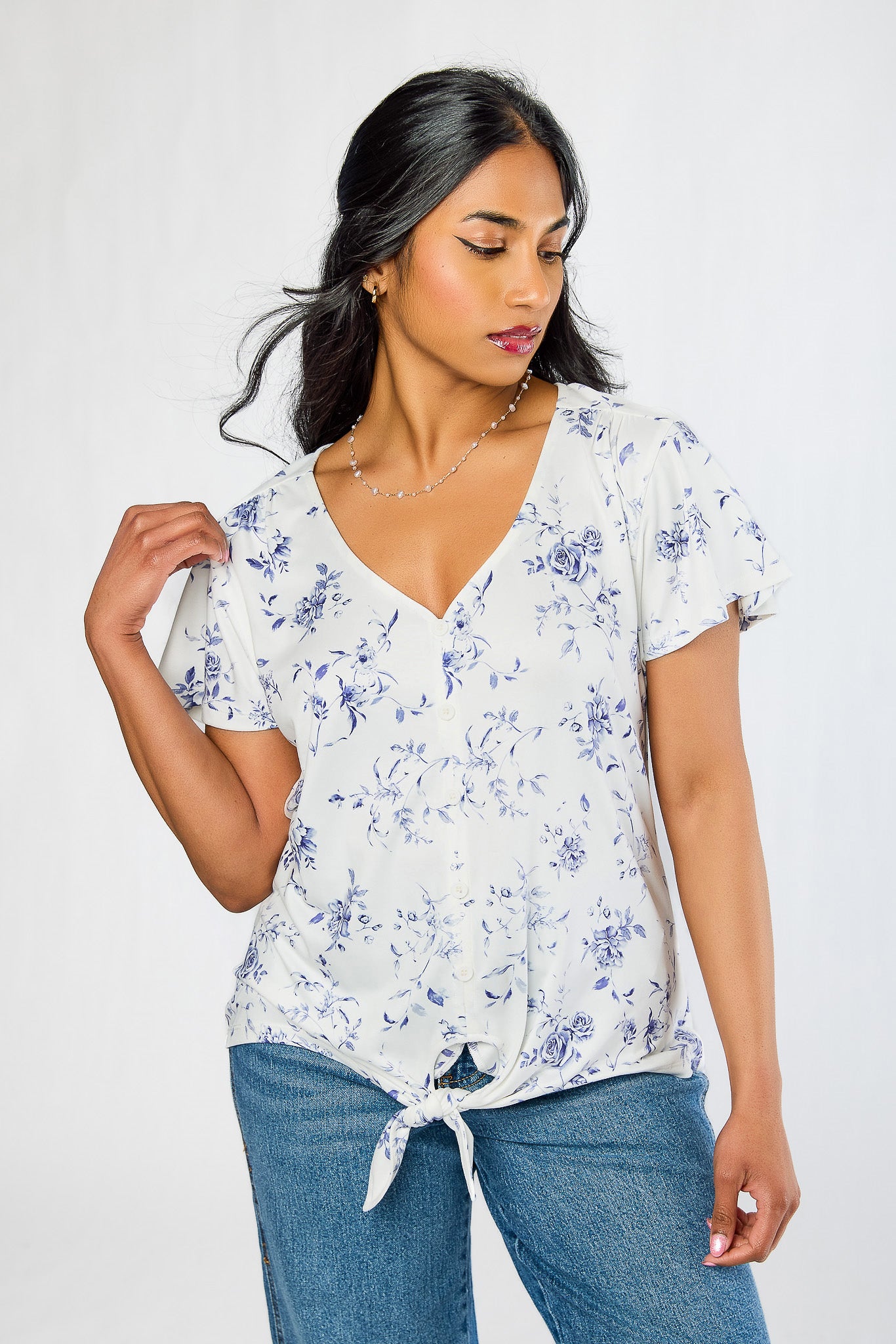 Small Roses Flutter Sleeve Tie-Front Top