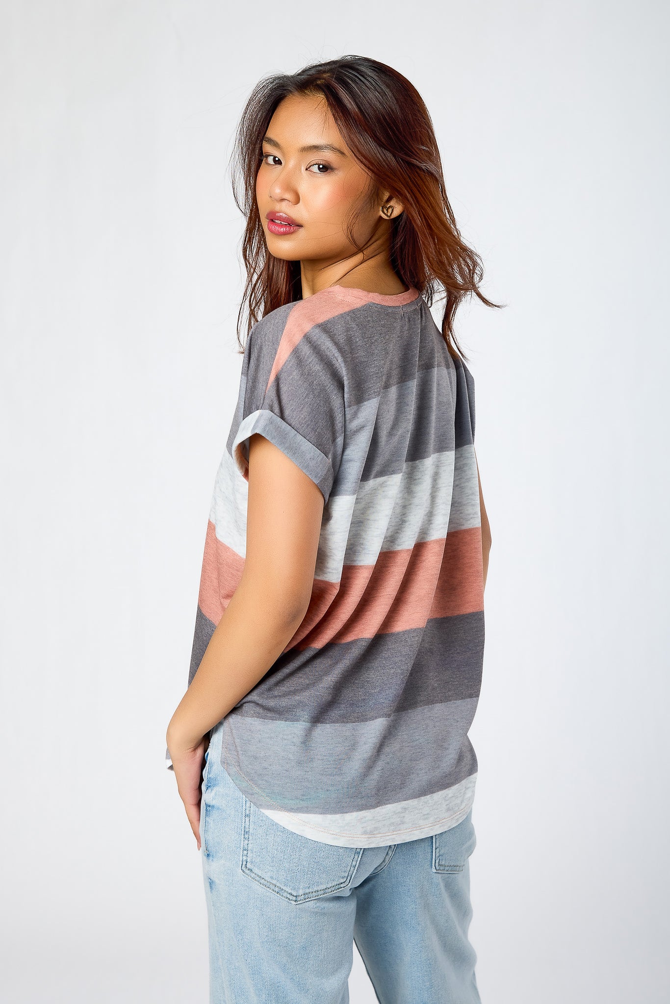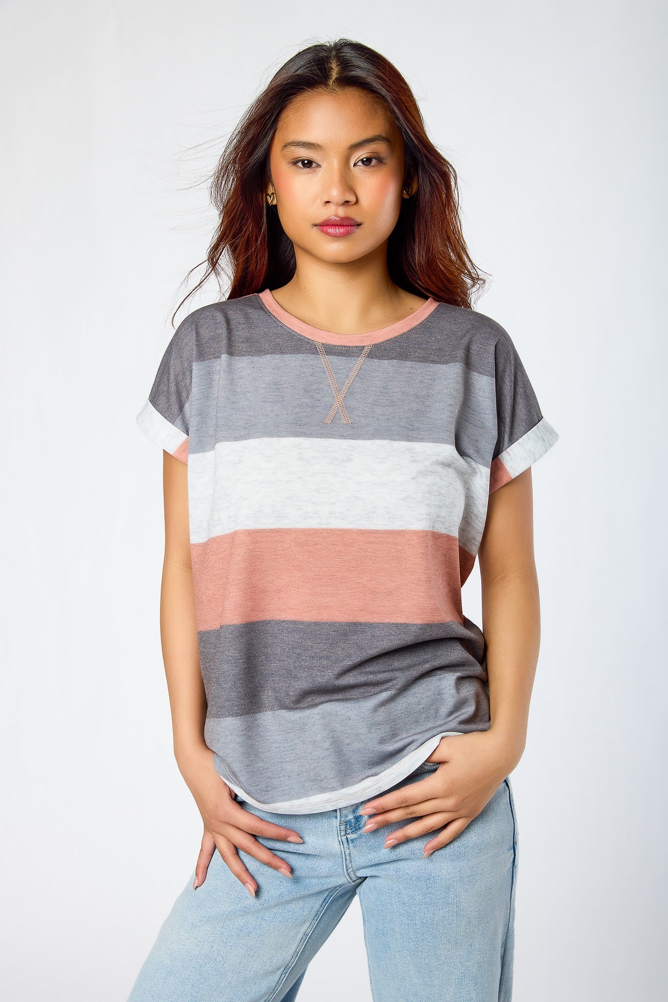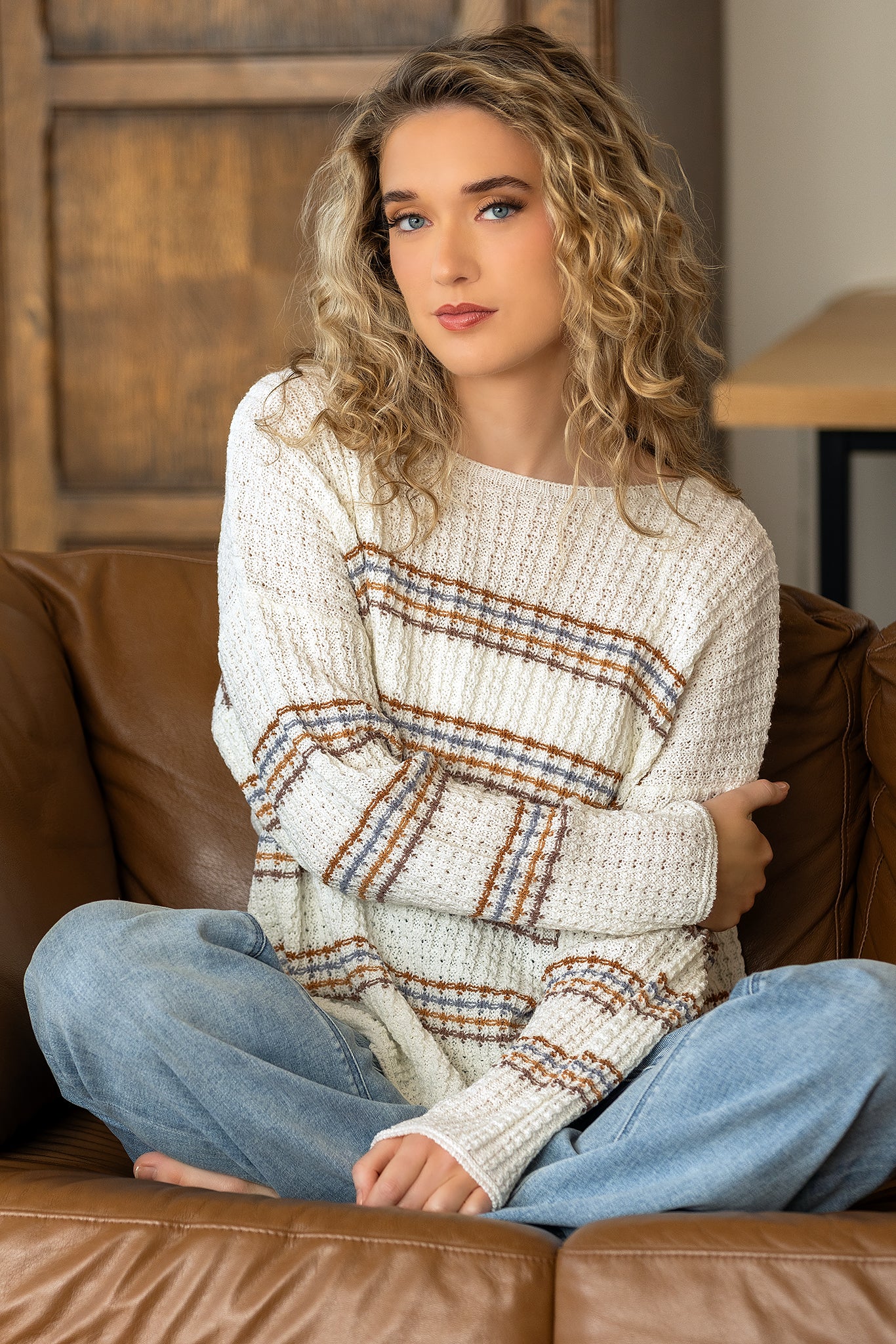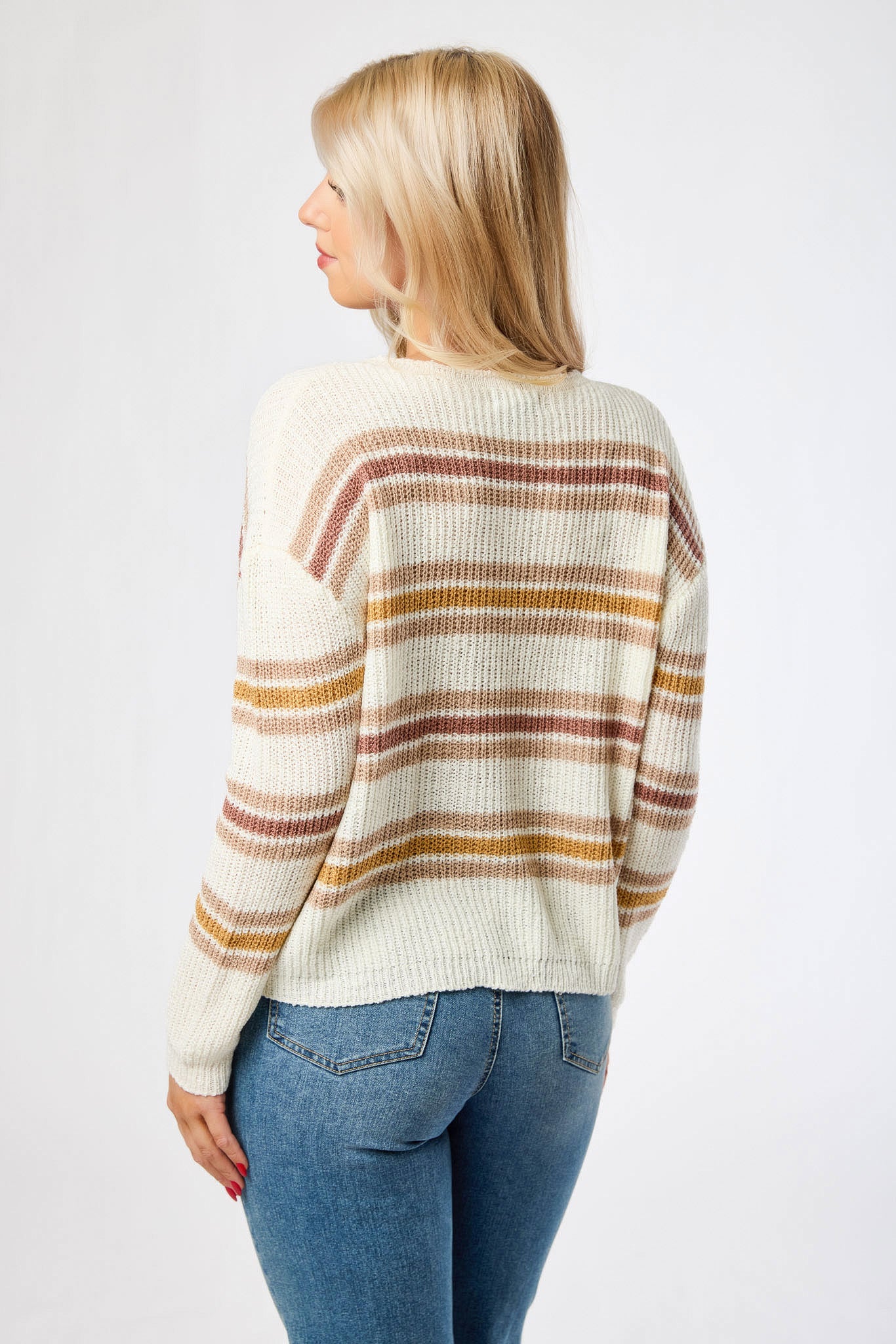 Stripe Lightweight Crew-Neck Dolman Sleeve Sweater