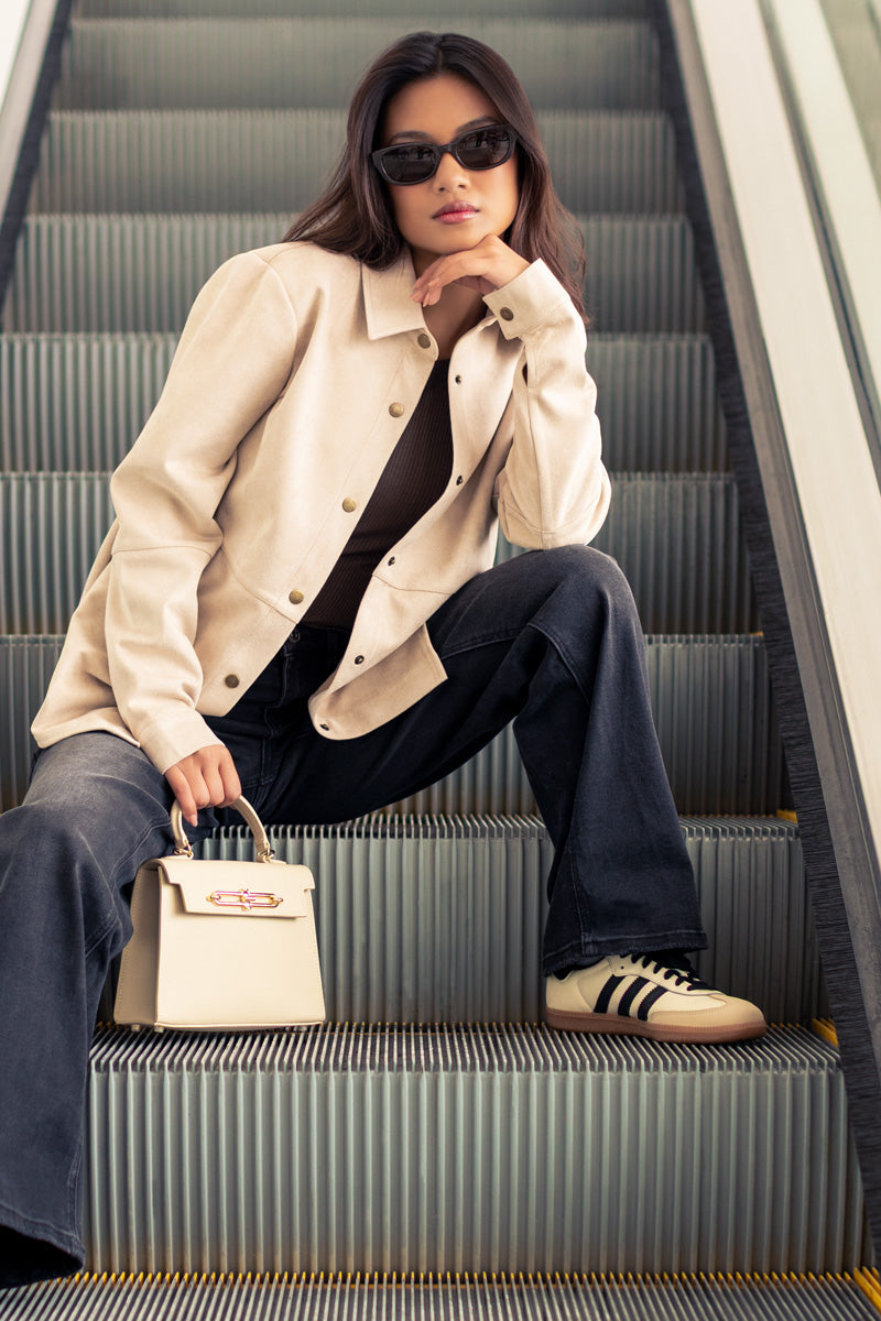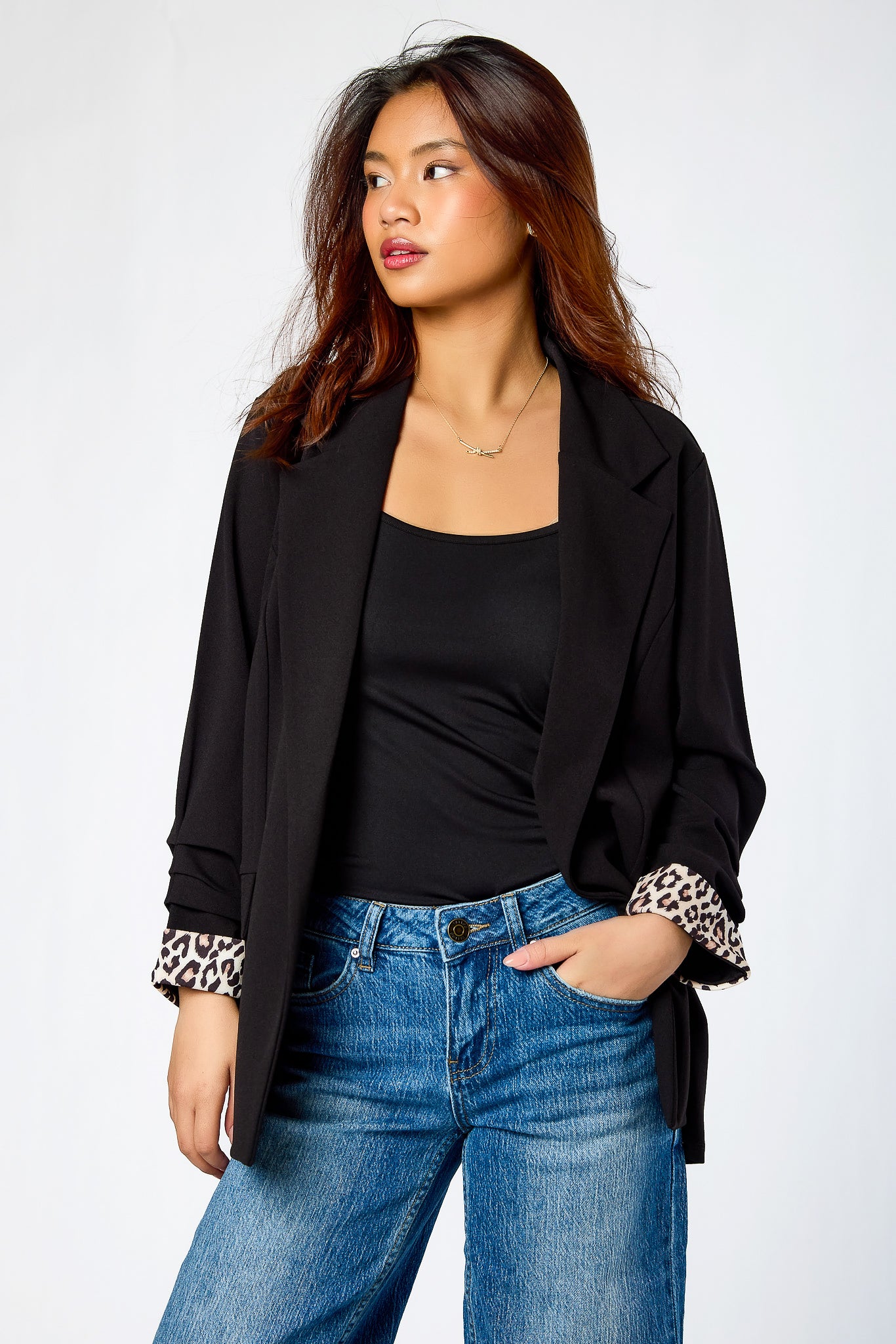 Stretch Crepe Blazer with Ruched Sleeves and Leopard Print Cuff