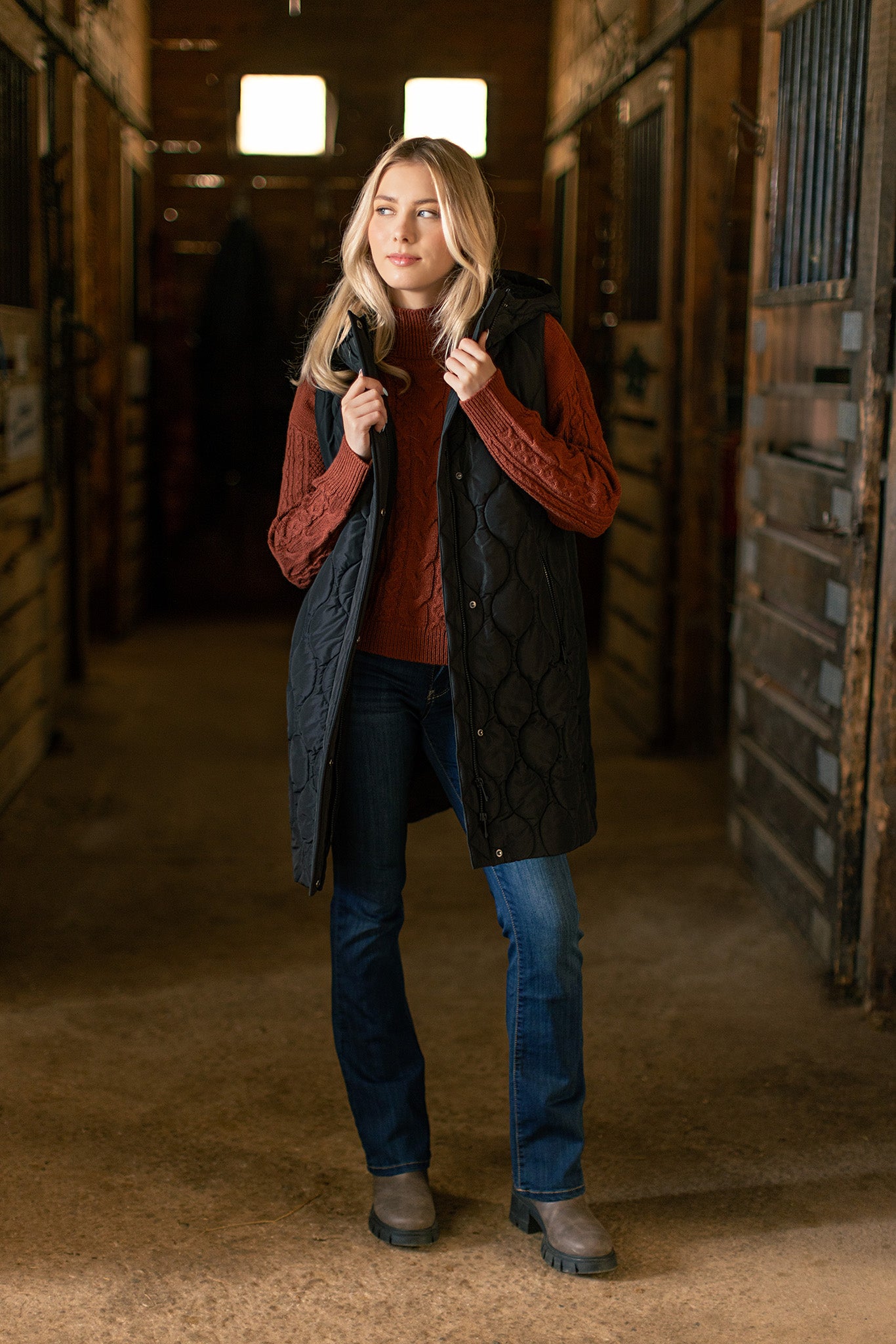 Quilted Puffer Midi Vest with Sherpa Lined Hood