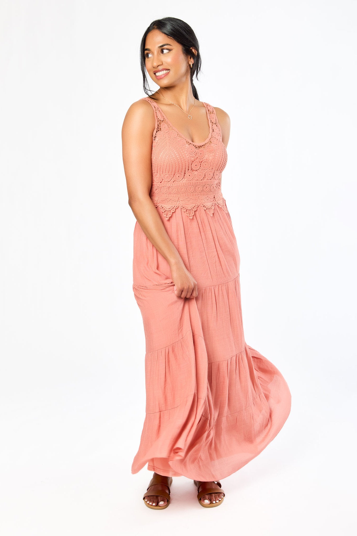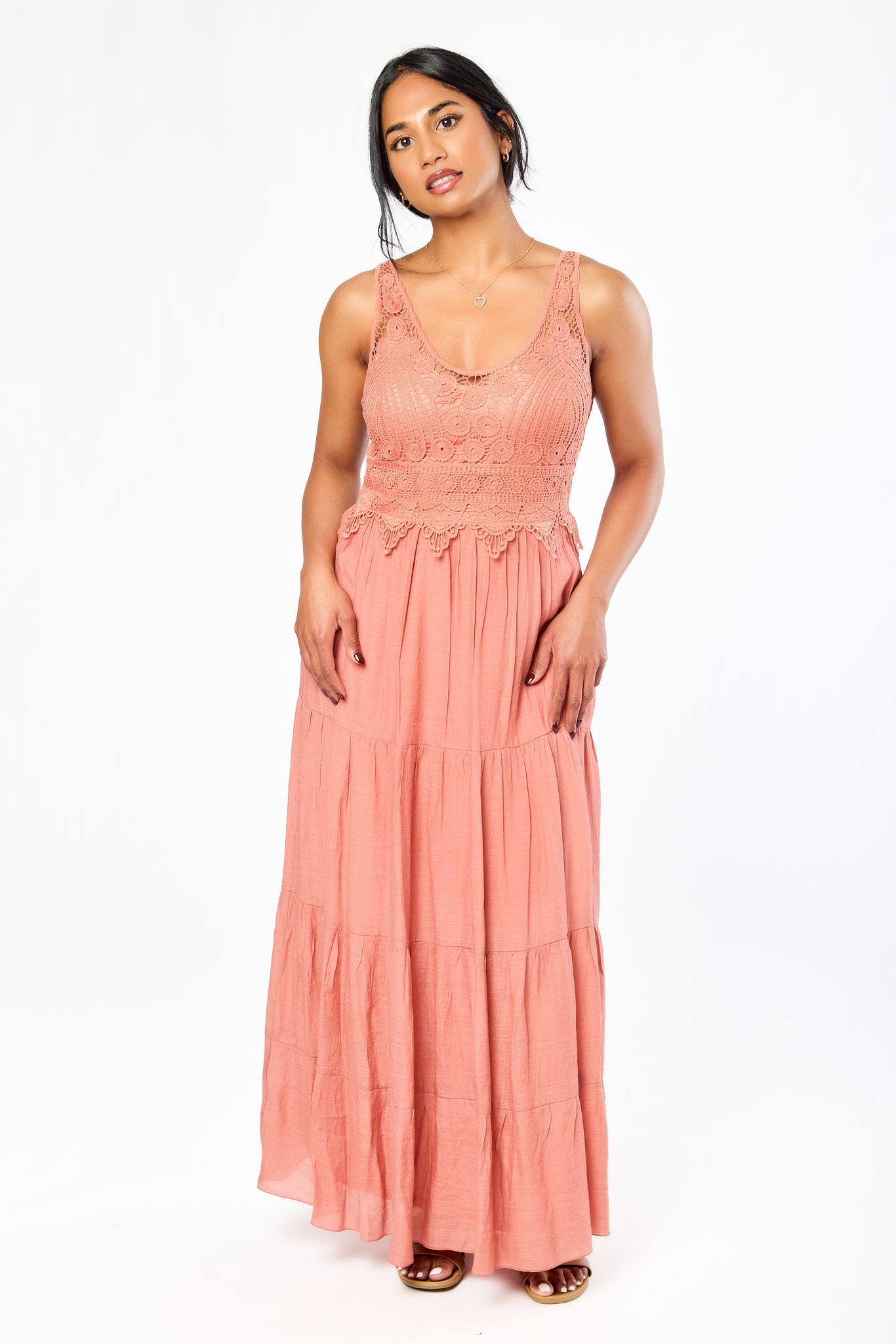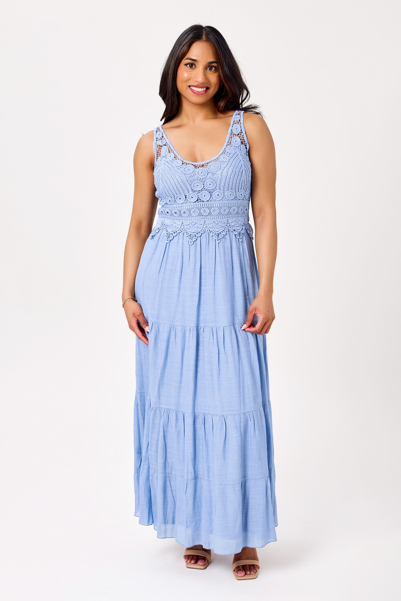 Gauze Maxi Tiered Dress with Crochet Bodice