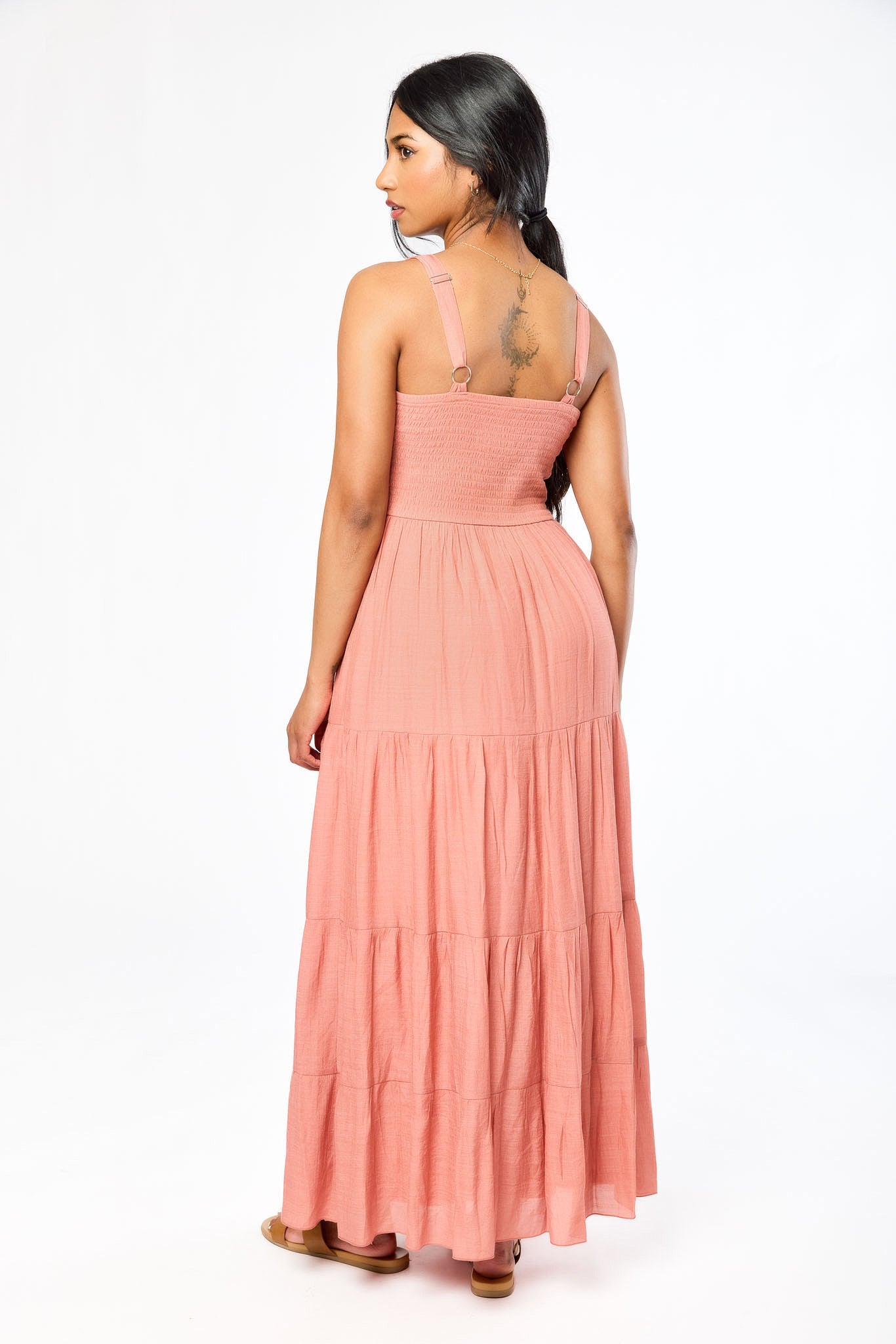 Airflow Sleeveless Tie-Back Tiered Midi Dress