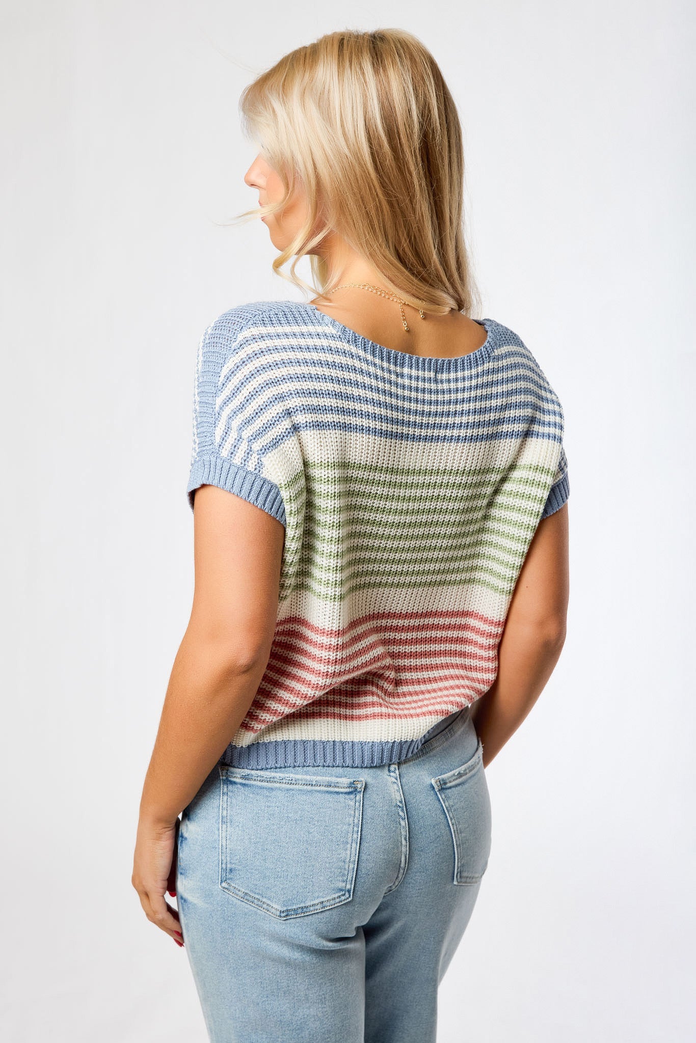 Stripe Short Sleeve Sweater