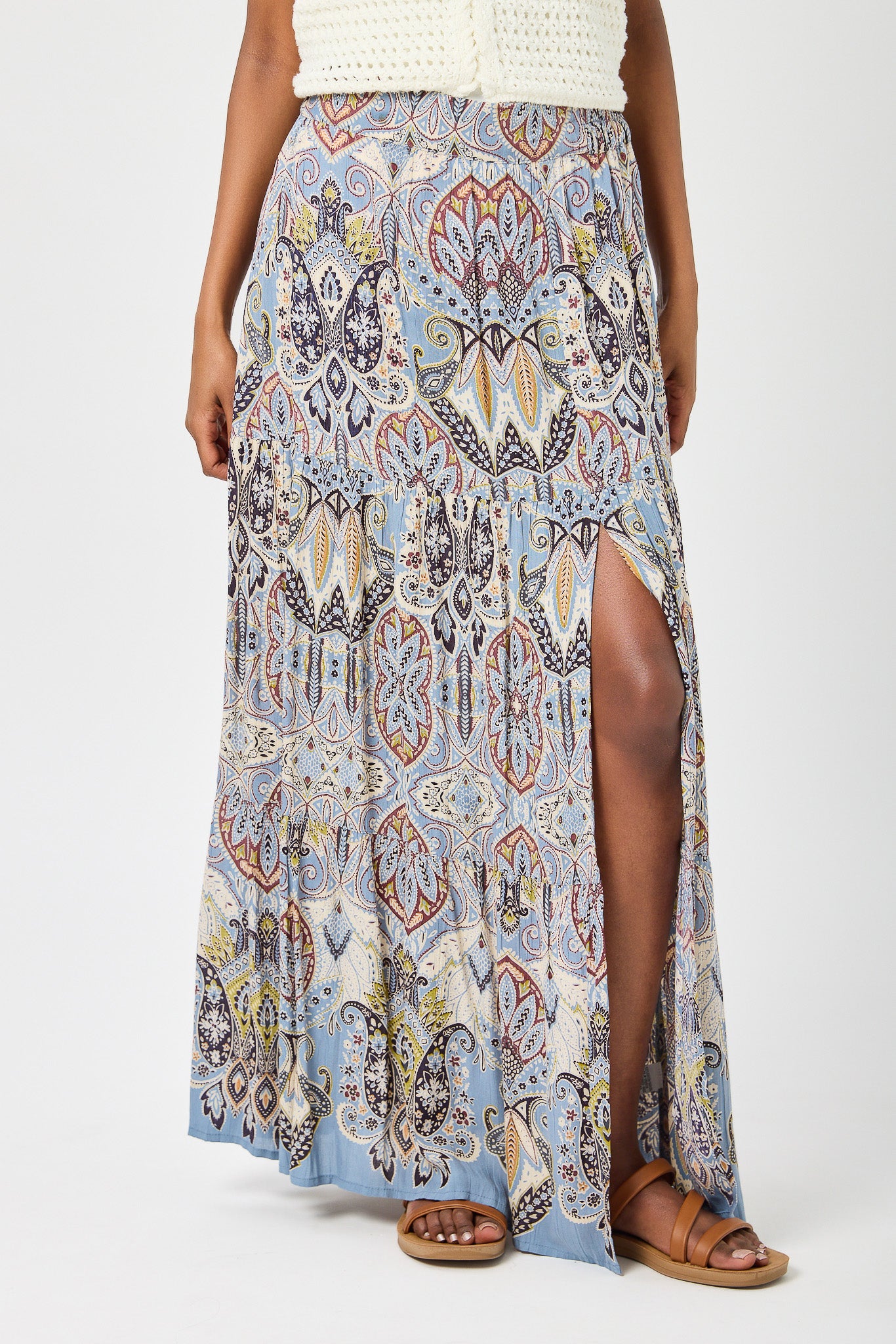 Boho Print Tiered Maxi Skirt