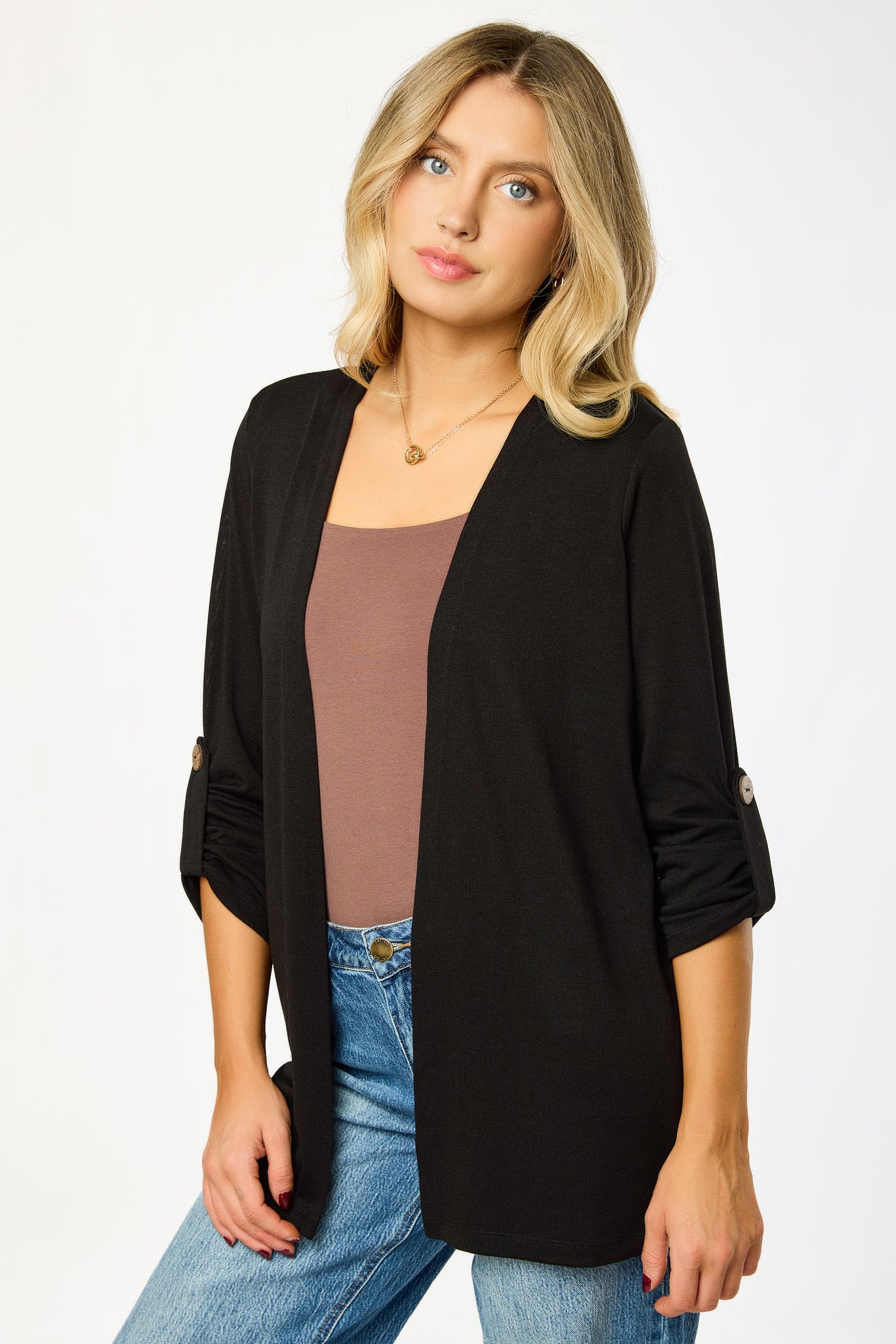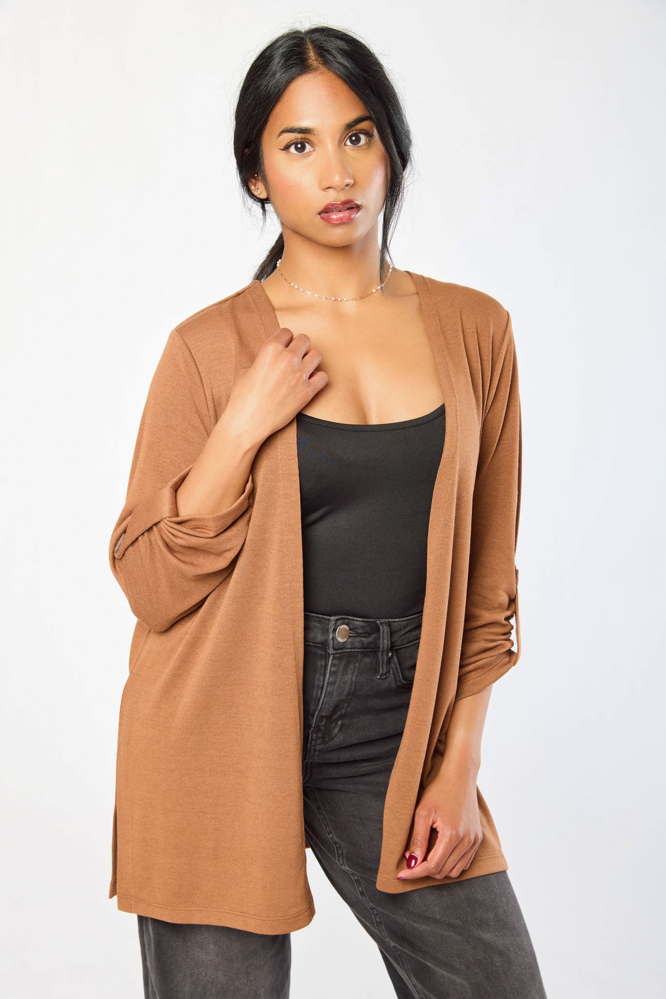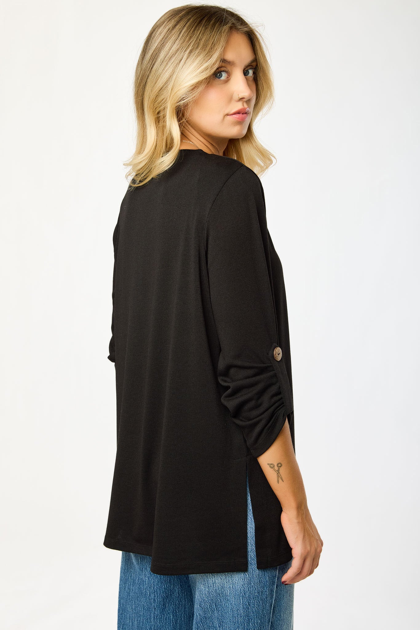Hacci Open Cardigan with Roll-Up Sleeves and Side Slits