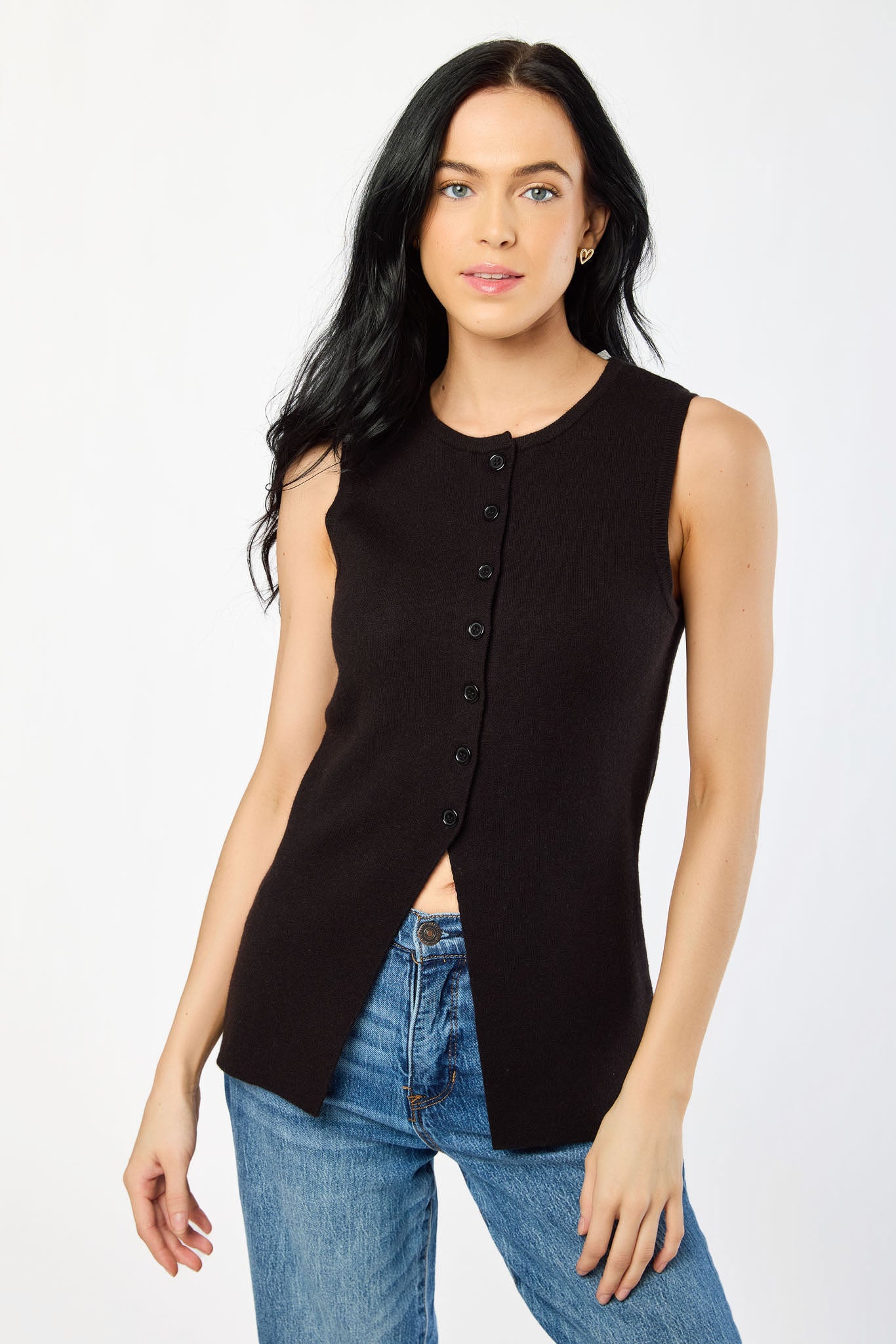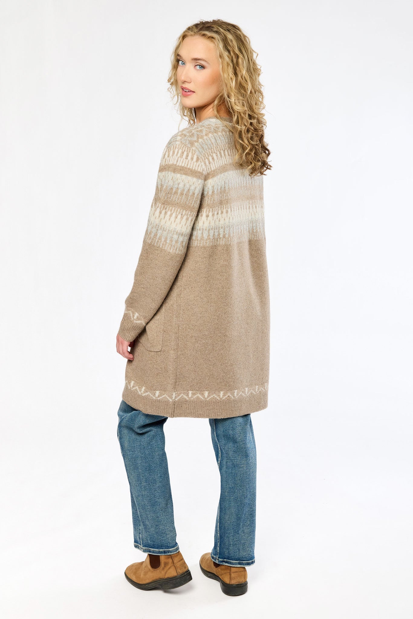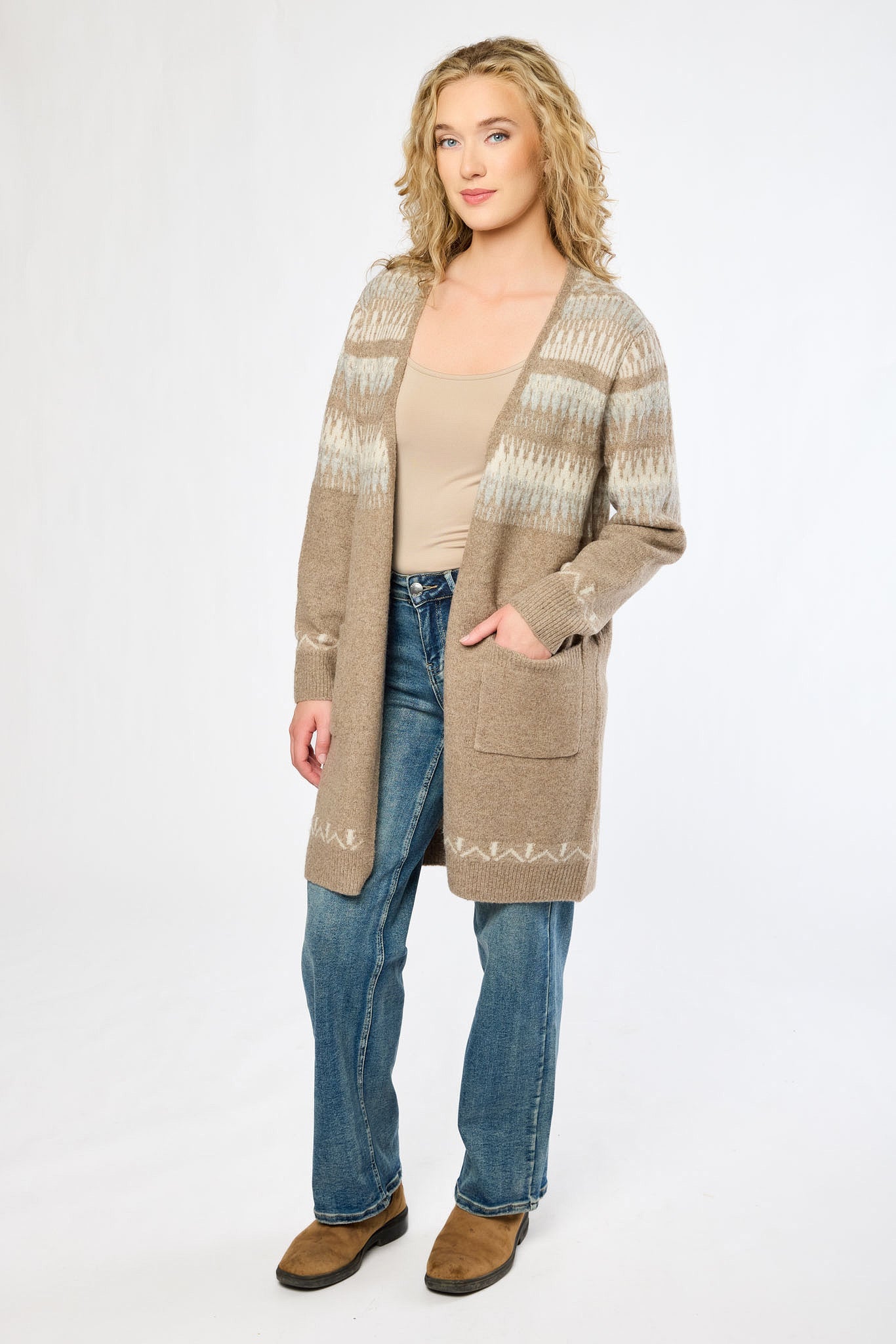 Hacci Open Cardigan with Roll-Up Sleeves and Side Slits
