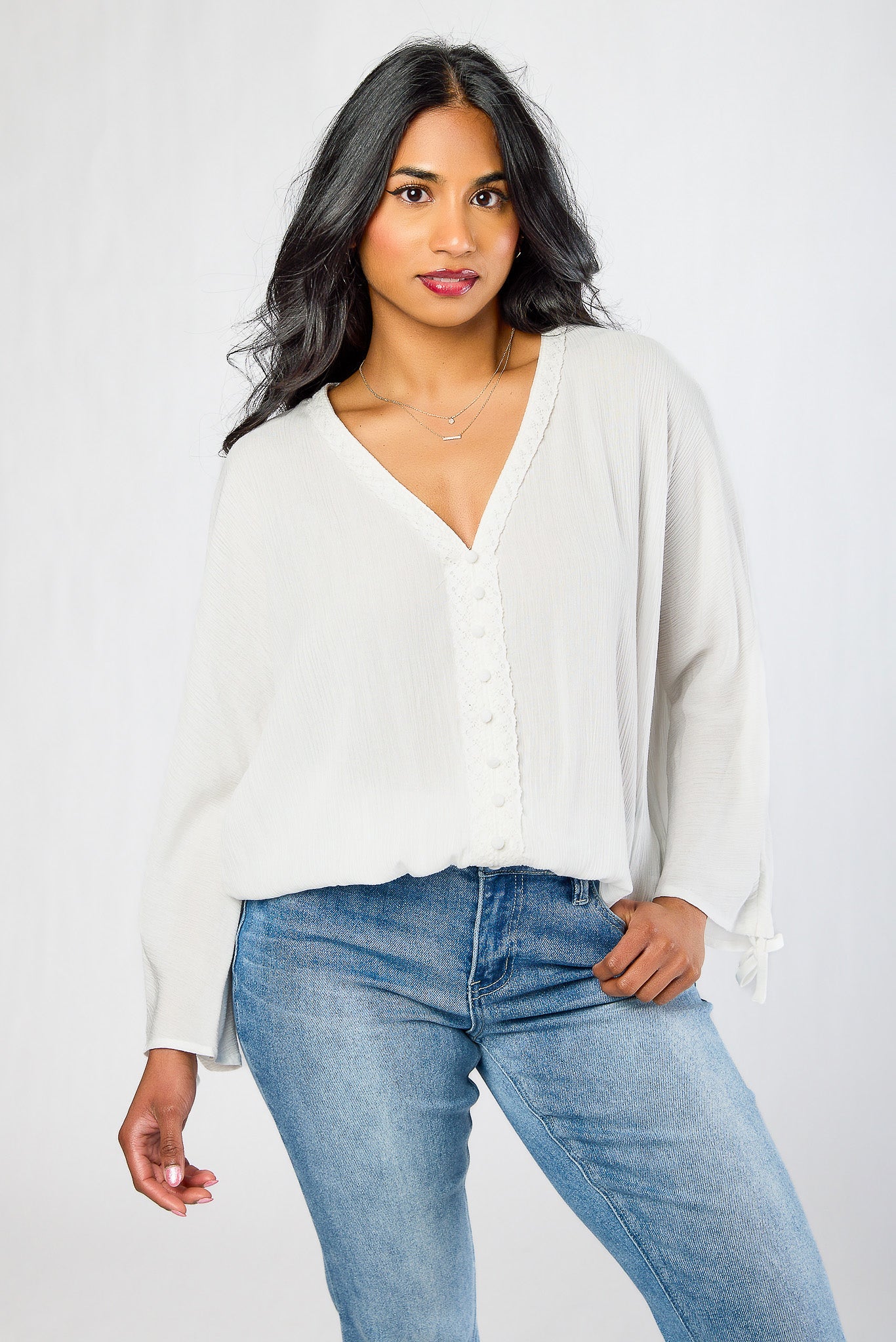 Blouse à manches kimono brodées