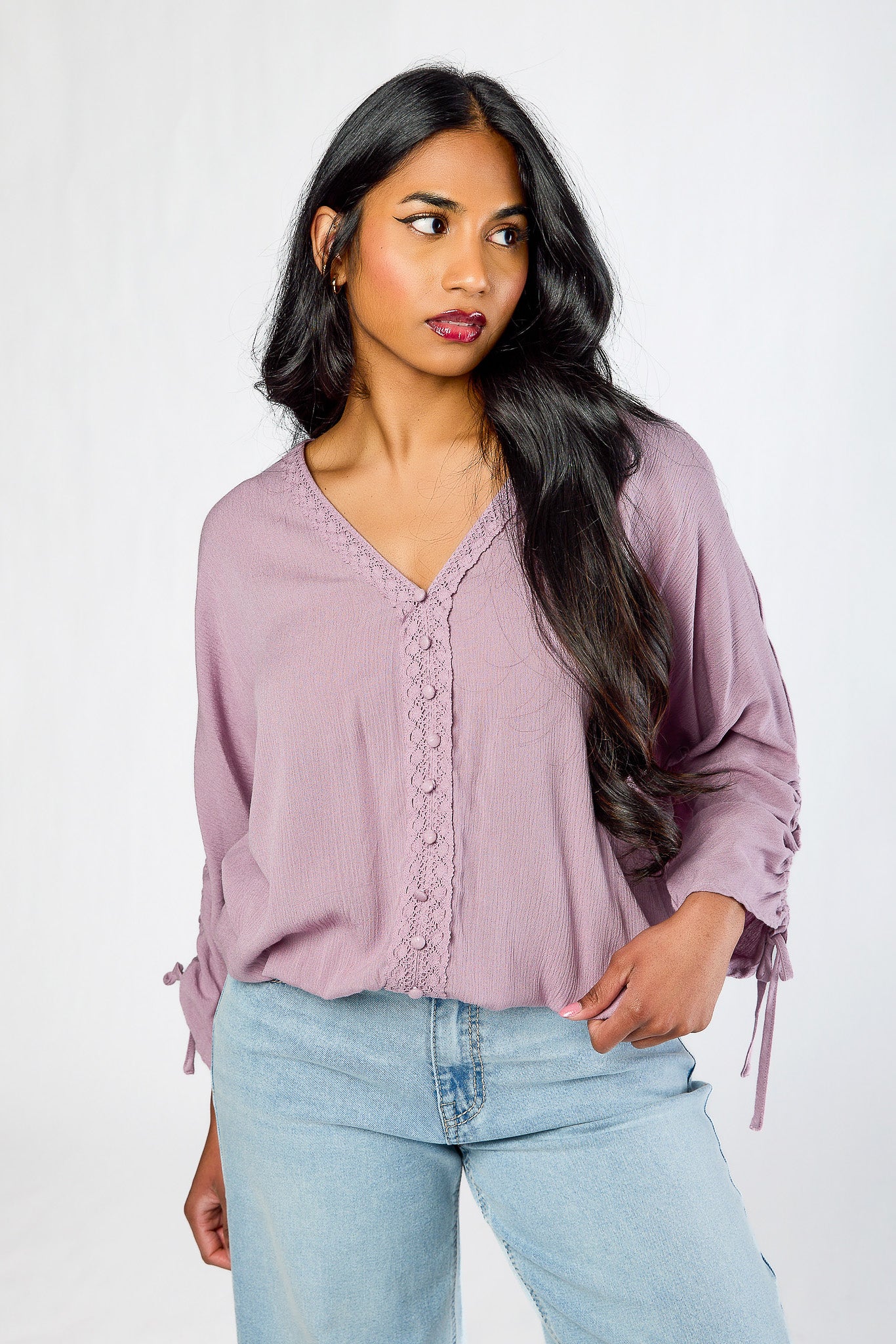 T-shirt boutonné en coton froncé