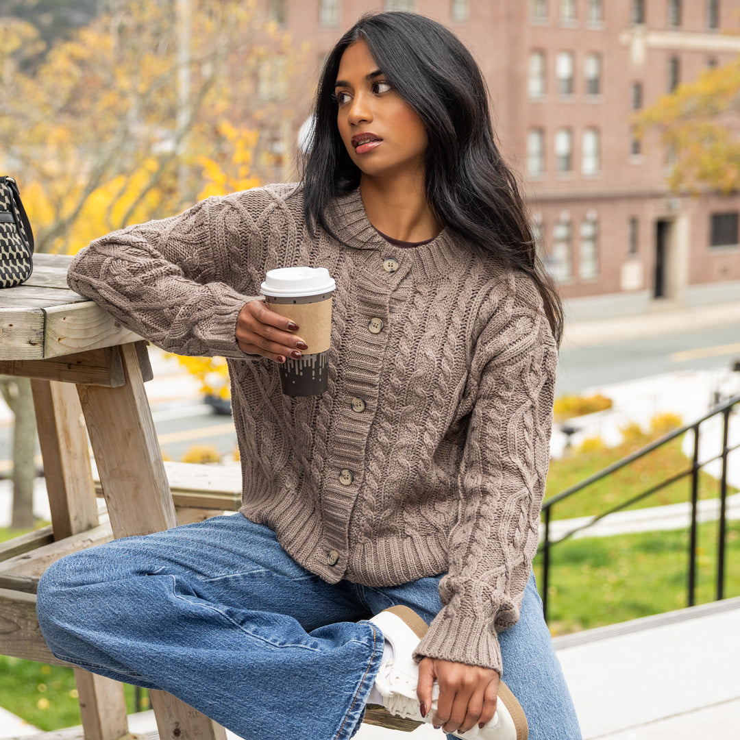 Cardigan ouvert à manches longues avec fleurs bouffantes