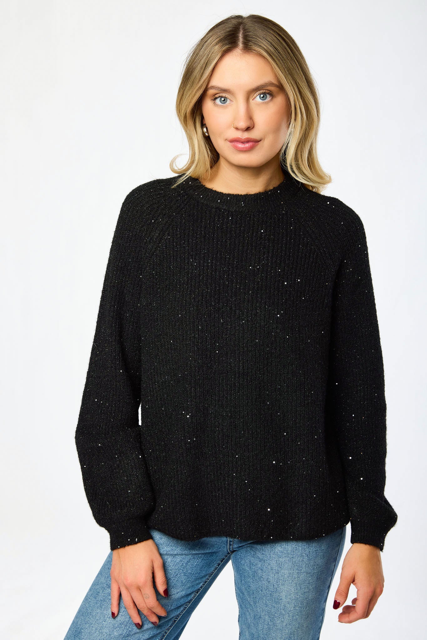 Haut côtelé métallisé à manches longues et encolure dégagée
